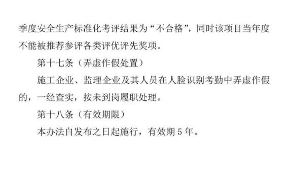 施工企業(yè)、監(jiān)理企業(yè)及其人員在人臉識別考勤中弄虛作假的,一經(jīng)查實,按未到崗履職處理。