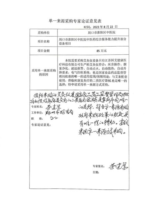 周口市淮陽區中醫院中醫藥綜合服務能力提升部分設備項目單一來源采購公示